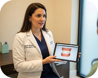 Exame detalhado, fotografias intra/extraorais e, quando necessário, radiografias. Você recebe um plano de cuidado objetivo, com prazos, valores e alternativas.